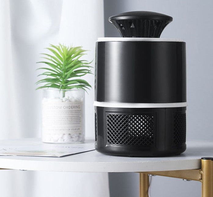 Lampara atimosquitos que funciona mediante usb perfecta para atrapar mosquitos sin esfuerzo, tiene una luz ultravioleta que los atrae y despues son succionados por el dispositivo mediante succión. Color: Negro